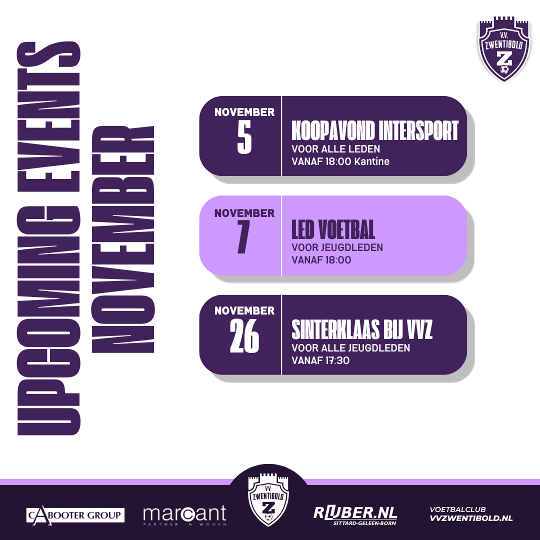 Met vaste regelmaat worden er evenementen georganiseerd bij VV Zwentibold. Heb je vragen over een evenement stel deze dan via events@vvzwentibold.nl. Ook voor nieuwe ideeen of om je aan te melden bij de organisatie van toekomstige evenementen kun je dit email adres gebruiken.